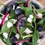 Day 2 of our 7 Day Salad Challenge and I have a fruity little bowl of inspiration to share with you, the most delicious Clean Eating Blueberry & Goats Cheese Salad. This is lush, like a party of perfect flavour combos going off in your mouth. I cant think of a better way to use up the last of those summer berries. Give it a go!